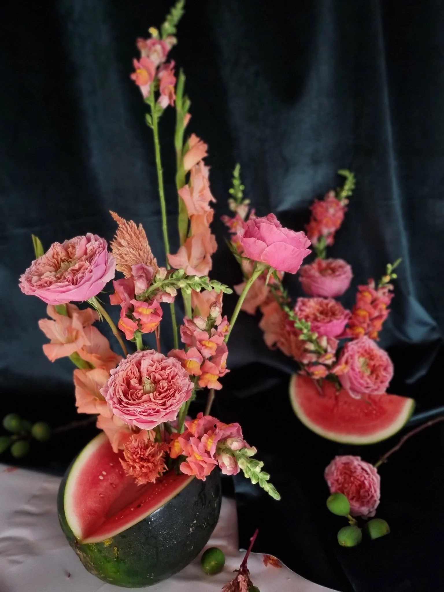 While not designed for grazing, these arrangements often include grapes, citrus, or melons whose presence tempts the eye and sometimes the palate. The result? A display that feels romantic, painterly, and entirely unforgettable.